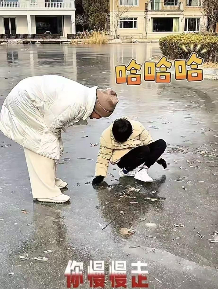 北京的天气不同台湾,湖面的水都已经结了一层厚厚的冰,路人都可以自由行走。而生怕小玥儿怕冷,张兰亦贴心地帮孙女整理衣服。